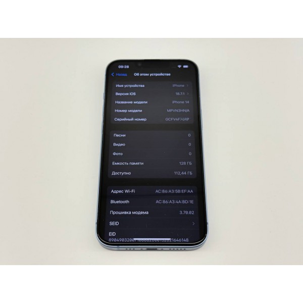 Apple iPhone 14 128GB Blue, Model A2882, Не Китайский Реф! Не Восстановленный! Экран 6.1" технология OLED 460 ppi c защитой от царапин Ceramic Shield, процессор Apple A15 Bionic, двойная камера 12 Мп + 12 Мп, Фронтальная камера 12 Мп, память 6Гб/128Гб, Пыле и влагозащита IP68, Face ID, IOS, Neverlock (любая сим, любое обновление), NFC, 5G, Версия с поддержкой физической SIM + eSIM.