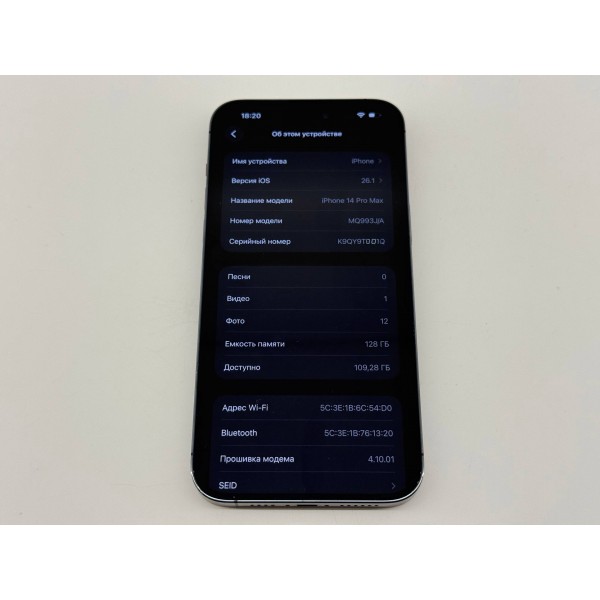 Apple iPhone 14 Pro Max 128GB Deep Purple, Model A2893, Не Китайский Реф! Не Восстановленный! Экран 6.7" технология OLED (Super Retina XDR) 460 ppi Частота обновления 120 Гц c защитой от царапин Ceramic Shield, процессор Apple A16 Bionic, тройная камера 48 Мп + 12 Мп + 12 Мп, Фронтальная камера 12 Мп, память 6Гб/128Гб, Пыле и влагозащита IP68, Face ID, IOS, Neverlock (любая сим, любое обновление), NFC, 5G, Версия с поддержкой физической SIM + eSIM.