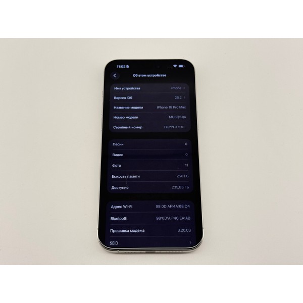 Apple iPhone 15 Pro Max 256GB White Titanium, Model A3105, Не Китайский Реф! Не Восстановленный! Экран 6.7 технология OLED (Super Retina XDR) разрешение 1290x2796, 460 ppi, частота обновления 120 Гц, защита от царапин Ceramic Shield, процессор Apple Apple A17 Pro, тройная камера 48 Мп + 12 Мп + 12 Мп, Фронтальная камера 12 Мп, память 8Гб/256Гб, Пыле и влагозащита IP68, Face ID, IOS, Neverlock (любая сим, любое обновление), NFC, 5G, Версия с поддержкой физической SIM + eSIM.