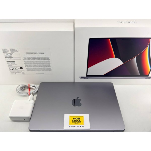 Apple Macbook Pro 14" M1 Pro 2021 16GB/512GB (MKGP3RU/A), Model A2442, Экран 14.2" 3024 x 1964 IPS (Liquid Retina XDR mini-LED) Технология True Tone Технология ProMotion с адаптивной частотой обновления до 120 Гц, Яркость экрана 1 000 кд/м² тип глянцевый, процессор Apple M1 Pro (8 ядер), 16 ГБ, SSD 512 ГБ, граф. адаптер: встроенный Apple M1 Pro GPU (14 ядер), Mac OS, Сканер отпечатка пальца, Время работы 11 часов (работы в интернете по беспроводной сети), Быстрая зарядка, цвет крышки серый, стандарт РСТ (заводская русская клавиатура).
