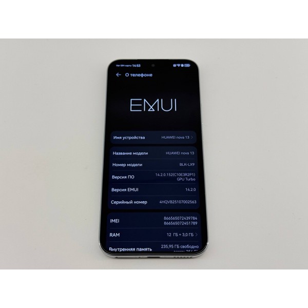 Huawei nova 13 12GB/256GB (BLK-LX9), цвет белый, Экран 6.7" технология OLED 395 ppi частота обновления экрана 120 Гц, 8-и ядерный процессор HiSilicon Kirin 8000 (2 400 МГц), двойная камера 50 Мп + 8 Мп, Фронтальная 60 Мп, HarmonyOS 4.2, память 12Гб/256Гб, Сканер отпечатка пальца и лица, Быстрая зарядка SuperCharge (100 Вт), АКБ Емкость 5000 мА·ч, Международная версия, NFC, LTE.