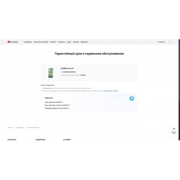 - Официальная гарантия сервисного центра Huawei до 3 июля 2026 года.