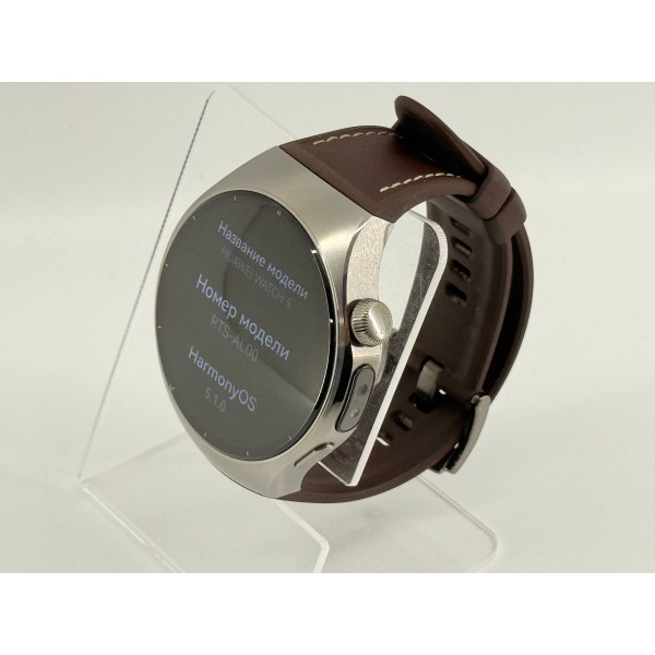 Huawei Watch 5 46мм (RTS-AL00), цвет титановый, синхронизация с Android/iOS, экран AMOLED 1.5", поддержка SIM-карты: eSIM, пульсометр, измерение кислорода в крови, измерение артериального давления, ЭКГ, AOD, GPS, Bluetooth 5.2, корпус: металл (титан), ремешок: Коричневый композитный ремешок, до 2 недель работы устройства без подзарядки.