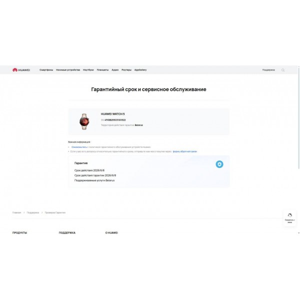 - Официальная гарантия сервисного центра Huawei до 8 июня 2026 года.