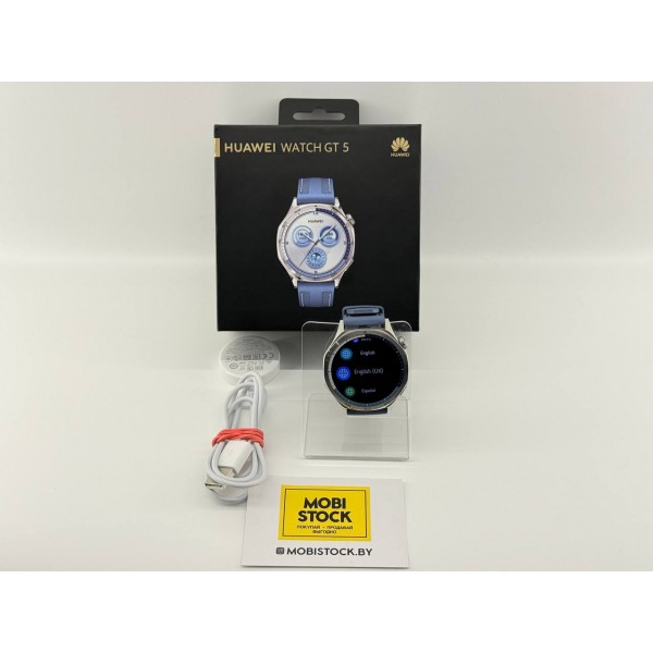 Huawei Watch GT 5 46мм (VLI-B19), цвет синий, синхронизация с Android/iOS/HarmonyOS, экран AMOLED 1.43", поддержка SIM-карты: нет, пульсометр, измерение кислорода в крови, GPS, Bluetooth 5.2, корпус: металл (сталь), ремешок: плетеный, до 2 недель работы устройства без подзарядки.