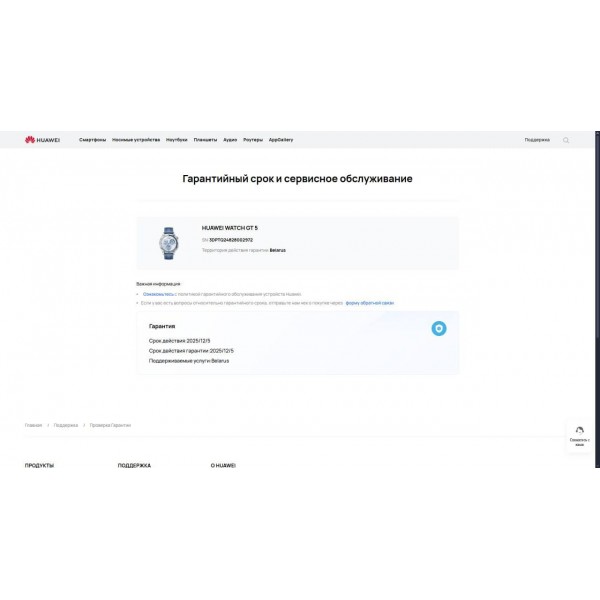 - Официальная гарантия сервисного центра Huawei до 5 декабря 2025 года.