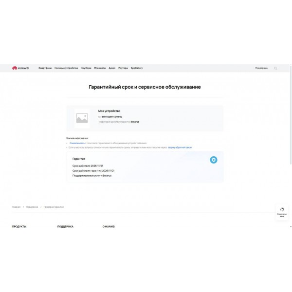 - Официальная гарантия сервисного центра Huawei до 21 ноября 2026 года.