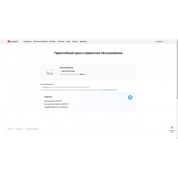 - Официальная гарантия сервисного центра Huawei до 17 января 2027 года.