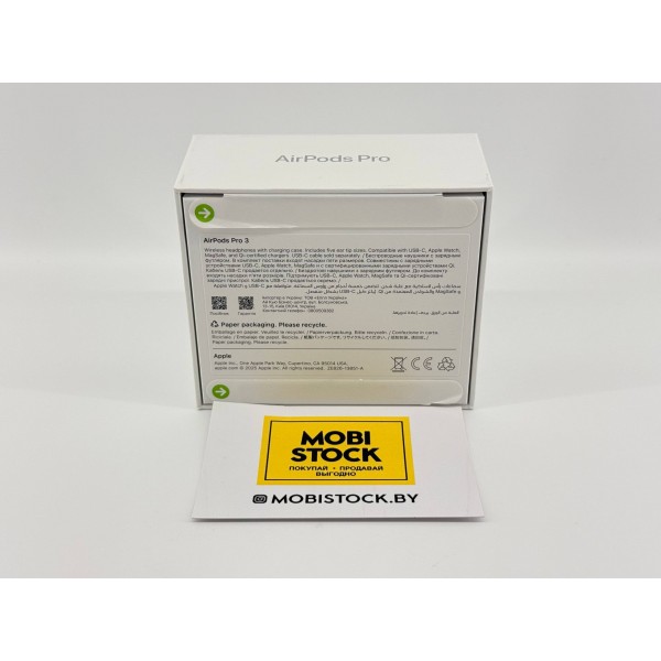 Apple AirPods Pro 3 (MFHP4), беспроводные наушники с микрофоном, внутриканальные, портативные, полностью беспроводные (TWS), Bluetooth 5.3, быстрая зарядка, время работы 8 ч, с кейсом 24 ч, активное шумоподавление.