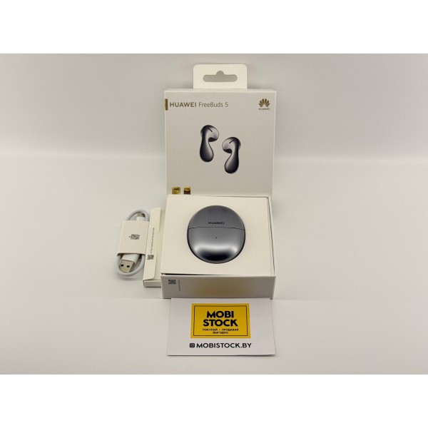 Наушники Huawei FreeBuds 5, цвет Silver Frost, модель (T0013), беспроводные наушники с микрофоном, вставные, портативные, полностью беспроводные (TWS), Bluetooth 5.2, 16-40000 Гц, быстрая зарядка, время работы 5 ч, с кейсом 30 ч, активное шумоподавление.