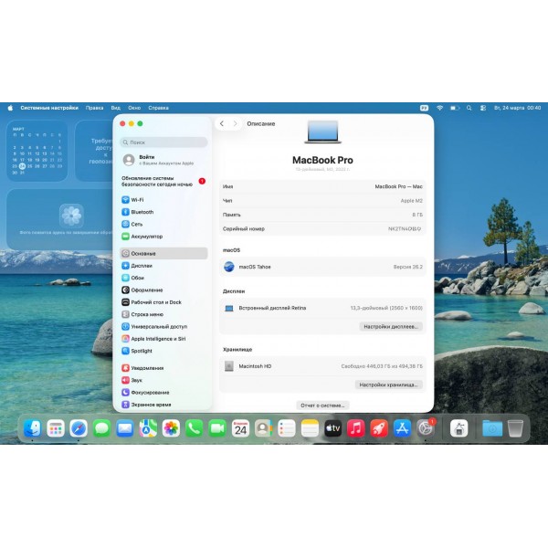 - Состояние аккумулятора 86%, циклов перезарядки 139.