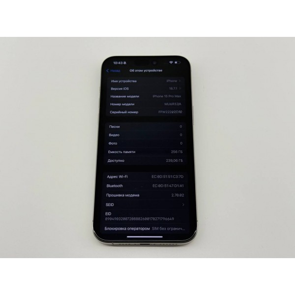 Apple iPhone 15 Pro Max 256GB Natural Titanium, Model A3105, Не Китайский Реф!