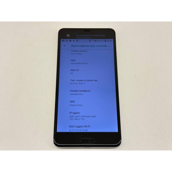 HTC U Ultra 4GB/64GB Dual sim, цвет белый, Экран 5.7" PVA (SLCD) с разрешением 1440x2560, 4-ми ядерный процессор Qualcomm Snapdragon 821 MSM8996Pro AB, камера16 Мп, фронтальная камера 16 Мп, память 4Гб/64Гб с возможностью расширения картой памяти, Android, Емкость АКБ 3000 мА·ч.