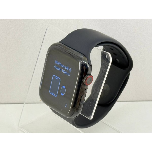 Apple Watch Series 4 LTE 44 мм Steel (MTV52LL/A), Model A1976, (корпус из нержавеющей стали черный/черный), часы-компаньон, поддержка iOS, экран AMOLED 1.78" (368x448, сенсорный), шагомер, пульсометр, время работы: 18 часов, корпус: алюминий, браслет:фторэластомер.