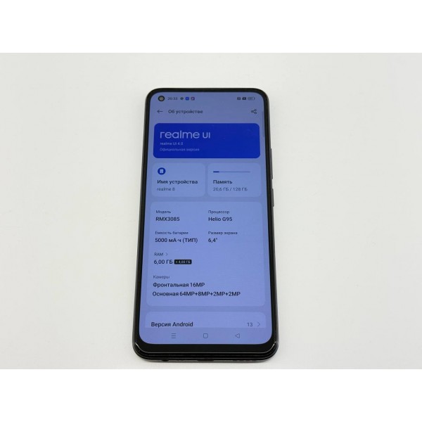 Realme 8 6GB/128GB (RMX3085) Global Version Dual Sim, цвет черный, Экран 6.4" с разрешением 1080x2400 технология AMOLED 409 ppi, 8-и ядерный процессор Mediatek Helio G95, Квадрокамера 64 Мп, фронтальная камера 16 Мп, память 6Гб/128Гб с возможностью расширения картой памяти, Android 13, Сканер отпечатка пальца и лица, быстрая зарядка, АКБ Емкость 5000 мА·ч, LTE.