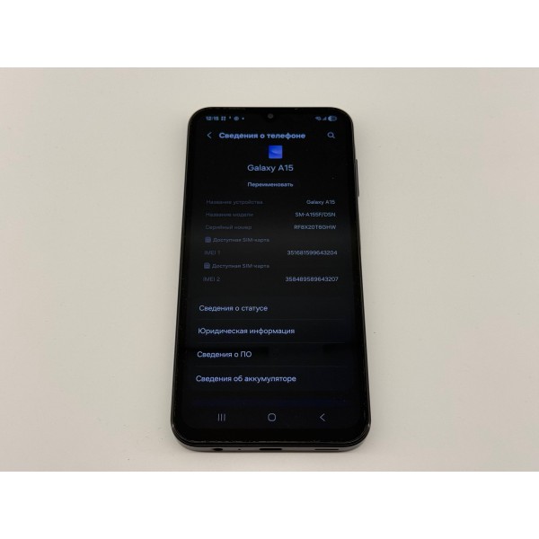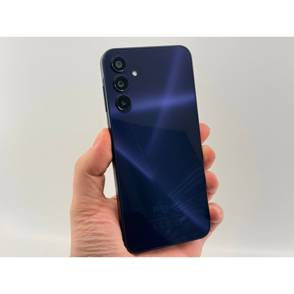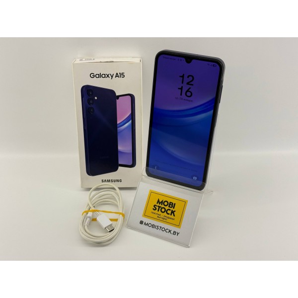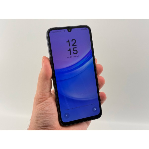 Samsung Galaxy A15 4GB/128GB (SM-A155F/DS) Dual Sim, цвет тёмно-синий, Экран 6.5" с разрешением 1080x2408 технология AMOLED (Super AMOLED) 396 ppi 90 Гц, 8-и ядерный процессор Mediatek Helio G99 (2 200 МГц), тройная камера 50 Мп + 5 Мп + 2 Мп, Фронтальная 13 Мп, память 4Гб/128Гб с возможностью расширения картой памяти, Android 14, Сканер отпечатка пальца и лица, Емкость АКБ 5000 мА·ч, любые обновления, LTE, NFC, Международная версия, Стандарт РСТ.