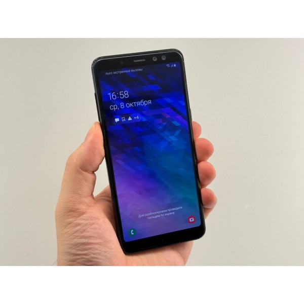 Samsung Galaxy A8 4GB/32GB (SM-A530F/DS) Dual Sim, цвет черный, Экран 5.6" AMOLED 1080x2220 441 ppi, 8-и ядерный процессор Exynos 7885 (2200 МГц), тройная камера 16 Мп, Фронтальная 16 Мп, Память 4Гб/32Гб c возможностью расширения картой памяти, Сканер отпечатка пальца и лица, Android 7.1 Nougat, АКБ Емкость 3000 мА·ч, Международная версия, NFC, LTE.