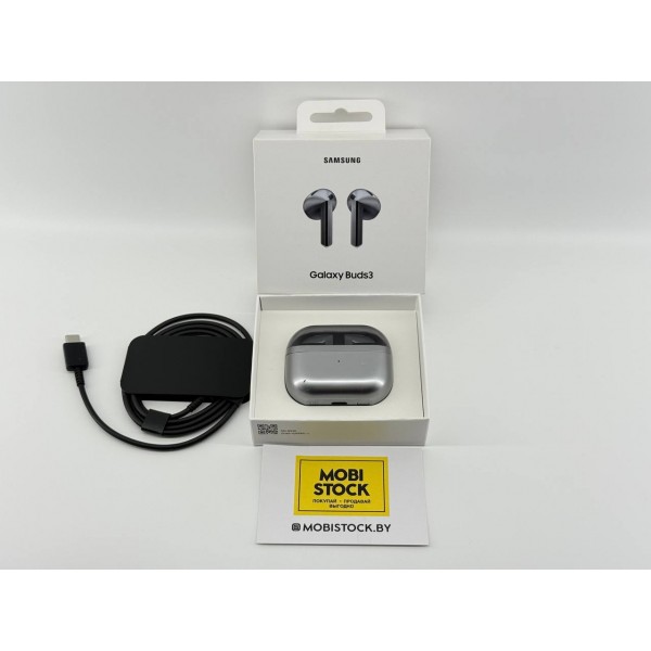 Samsung Galaxy Buds 3 (SM-R530), цвет серебро, беспроводные наушники с микрофоном, вставные, портативные, полностью беспроводные (TWS), Bluetooth 5.4, нет, время работы 6 ч, с кейсом 30 ч, активное шумоподавление.