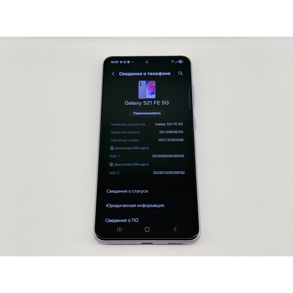 Samsung Galaxy S21 FE 5G 6GB/128GB (SM-G990B/DS) Snapdragon Dual Sim, цвет фиолетовый, Экран 6.4" 1080x2340 AMOLED 403 ppi, Частота обновления 120 Гц, Gorilla Glass Victus, 8-и ядерный процессор Qualcomm Snapdragon 888 (2 840 МГц), Тройная камера 12 Мп + 12 Мп + 8 Мп, Фронтальная 32 Мп, Пыле- и влагозащита IP68, Android, Стереодинамики, Сканер отпечатка пальца и лица, Быстрая зарядка Delivery 3.0, NFC, АКБ Емкость 4500 мА·ч, Стандарт РСТ.