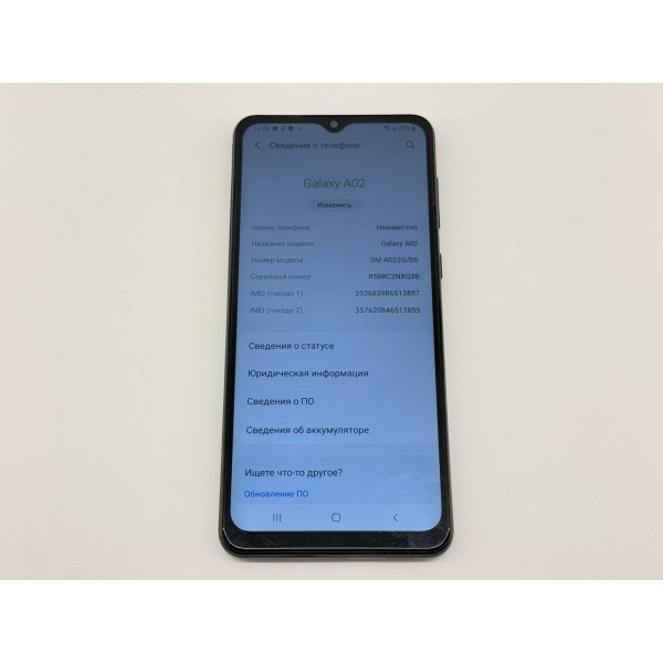 Samsung Galaxy A02 2GB/32GB (SM-A022G/DS) Dual Sim, цвет черный, Экран 6.5" 720x1600 IPS 270 ppi, Частота обновления 60 Гц, 8-и ядерный процессор Mediatek MT6739 (1500 МГц), двойная камера 13 Мп + 2 Мп, Фронтальная 5 Мп, память 2Гб/32Гб с возможностью расширения картой памяти, Пыле- и влагозащита IP68, Android, Стереодинамики, Сканер отпечатка пальца и лица, Быстрая зарядка, NFC, Емкость АКБ 5000 мА·ч.