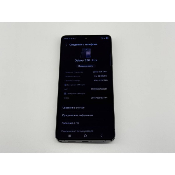 Samsung Galaxy S26 Ultra 12GB/256GB (SM-S948B/DS) Dual Sim, цвет черный, Экран 6.9" 1440x3120 AMOLED (Dynamic AMOLED 2X, HDR10+) 498 ppi, Частота обновления 120 Гц, защита от царапин Gorilla Glass Armor 2, 8-и ядерный процессор Qualcomm Snapdragon 8 Elite Gen 5 (тактовая частота процессора 4740 МГц), 4-я камера 200 Мп + 50 Мп + 50 Мп + 10 Мп, Фронтальная 12 Мп, Пыле- и влагозащита стандарта IP68, Android 16, Сканер отпечатка пальца и лица, Быстрая зарядка USB Power Delivery 3.0, поддержка беспроводной зарядки (Fast Wireless Charging 2.0), Обратная беспроводная зарядка (4.5 Вт), АКБ Емкость 5000 мА·ч, 5G, Международная версия, Стандарт РСТ.