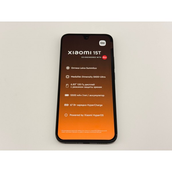Xiaomi 15T 12GB/512GB Global Version Dual Sim, цвет Black, Экран 6.83" AMOLED с разрешением 1280x2772 Частота обновления 120 Гц 447 ppi, мощный топовый 8-и ядерный процессор Mediatek Dimensity 8400 Ultra (3250 МГц), тройная камера 50 Мп + 50 Мп + 12 Мп, Фронтальная камера 32 Мп, Android 15, Защита IP68, Сканер отпечатка пальца и лица, Стереодинамики с поддержкой Dolby Atmos, Быстрая зарядка (67 Вт), АКБ Емкость 5500 мА·ч, NFC, 5G, Международная Версия.